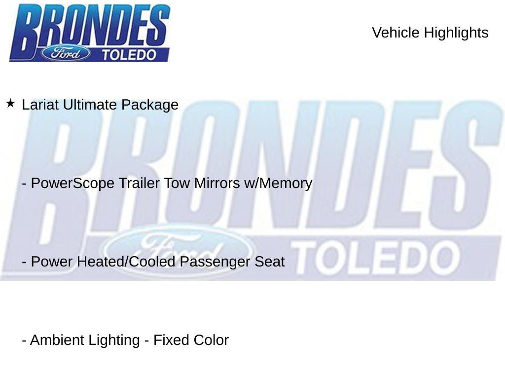 - LARIAT ULTIMATE PACKAGE: Includes power heated/cooled driver's seat with memory, power telescoping/tilt steering wheel, voice-activated navigation, and more.