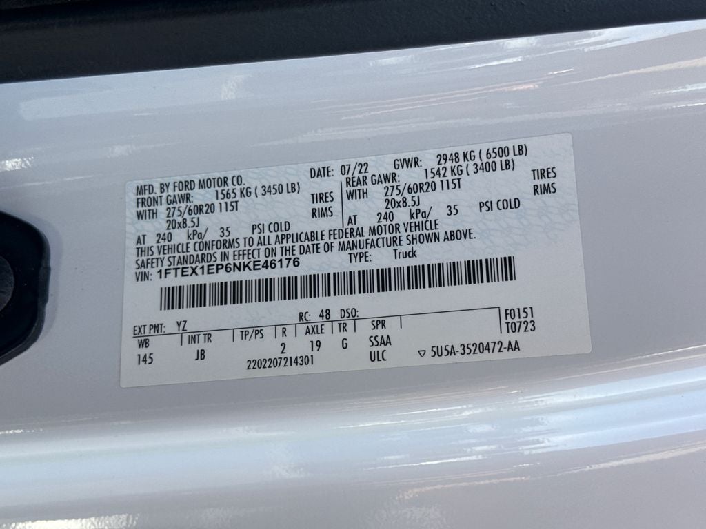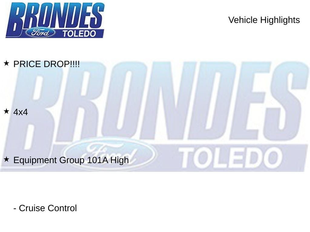 20 6-Spoke Machined-Aluminum Wheels, 3.55 Axle Ratio, 4-Wheel Disc Brakes, 4x4, 6 Speakers, ABS brakes, Air Conditioning, AM/FM radio, Auto High Beam, Auto High-beam Headlights, Auto Start-Stop Removal, Black Platform Running Boards, Body-Color Front & Rear Bumpers, Box Side Decals, Brake assist, Class IV Trailer Hitch Receiver, Cloth 40/20/40 Front Seat, Compass, Cruise Control, Delay-off headlights, Driver door bin, Driver/Passenger Seat Back Pocket, Dual front impact airbags, Dual front side impact airbags, Electronic Stability Control, Emergency communication system: SYNC 4 911 Assist, Equipment Group 101A High, Exterior Parking Camera Rear, Fog Lamps, Front anti-roll bar, Front Center Armrest, Front reading lights, Front wheel independent suspension, Fully automatic headlights, GVWR: 6,500 lbs Payload Package, Illuminated Entry, Lane-Keeping System, Low tire pressure warning, Manual Driver/Passenger Lumbar, Molded-In Color Black Honeycomb Style Grille, MyKey, Occupant sensing airbag, Outside temperature display, Overhead airbag, Overhead console, Passenger door bin, Passenger vanity mirror, Perimeter Alarm, Plastic Drop-In Bedliner, Power Door Locks, Power Front & Rear Windows, Power Glass Sideview Mirrors w/Black Skull Caps, Power steering, Power Tailgate Lock, Pre-Collision Assist w/Automatic Emergency Braking, PRICE DROP!!!!, Radio data system, Radio: AM/FM SiriusXM w/360L, Radio: AM/FM Stereo w/6 Speakers, Rear step bumper, Rear Window Defroster, Rear Window Fixed Privacy Glass, Rear-View Camera, Reverse Sensing System, Speed-sensing steering, Split folding rear seat, Steering wheel mounted audio controls, STX Appearance Package, SYNC 4, SYNC 4 w/Enhanced Voice Recognition, Tachometer, Telescoping steering wheel, Tilt steering wheel, Traction control, Trip computer, Unique Sport Cloth 40/20/40 Front-Seats, Variably intermittent wipers, Voltmeter, XL Power Equipment Group. CARFAX One-Owner.