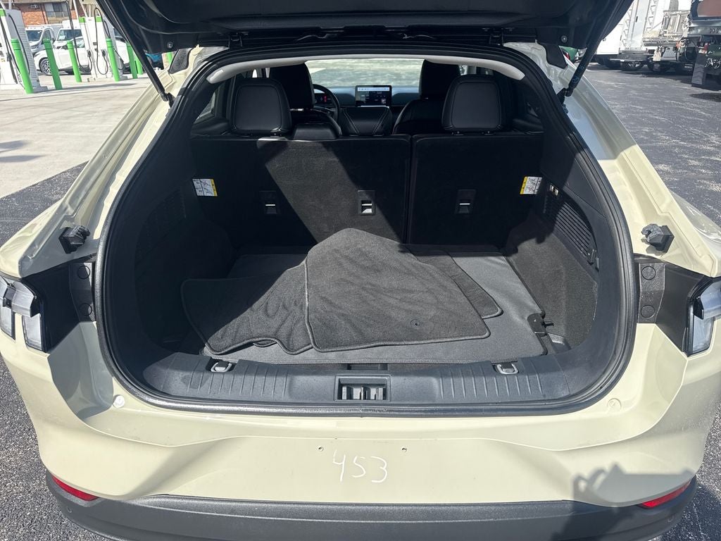 Designed with both style and substance in mind, the Mustang Mach-E Select boasts a sleek, aerodynamic exterior in a stunning Beige color. The 19-inch machined-face aluminum wheels and sporty accents exude a bold, modern aesthetic that is sure to turn heads.