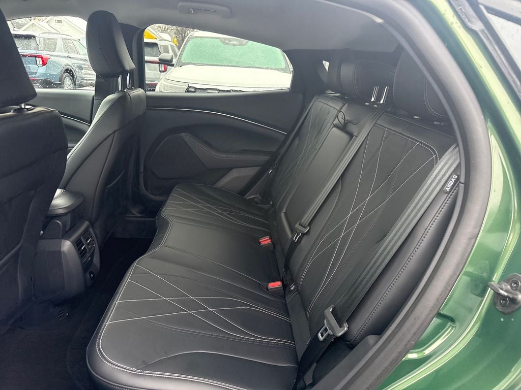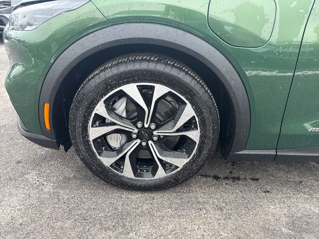 Beneath the stunning Eruption Green Metallic exterior, the Mustang Mach-E's electric powertrain delivers thrilling performance with an EPA-estimated 95 MPGe in the city and 88 MPGe on the highway. The single-speed automatic transmission and all-wheel drive ensure a smooth, responsive, and confident driving experience.